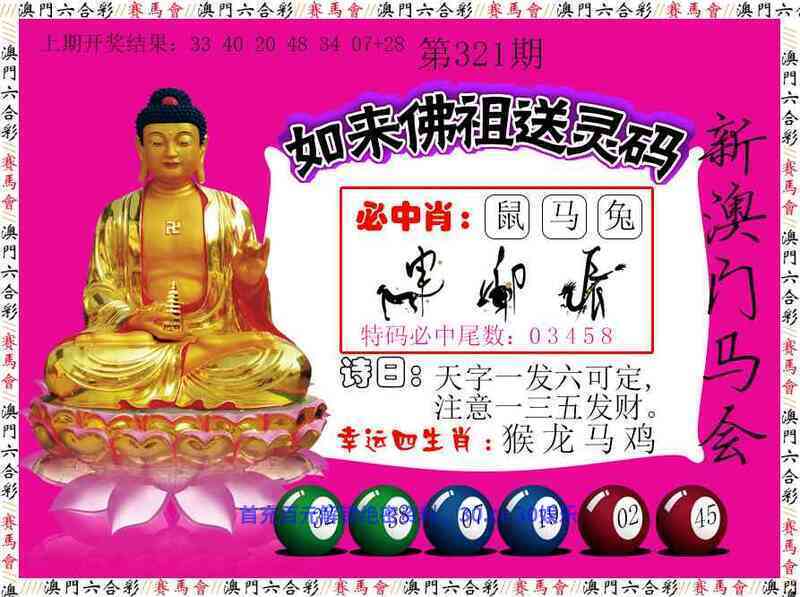 325期解佛祖送灵码图 诗日:今期生肖找荷花,开天壁地金银现 解送七肖:兔马虎鸡牛鼠蛇 幸运四生肖:兔马虎鸡 开:發00准 |